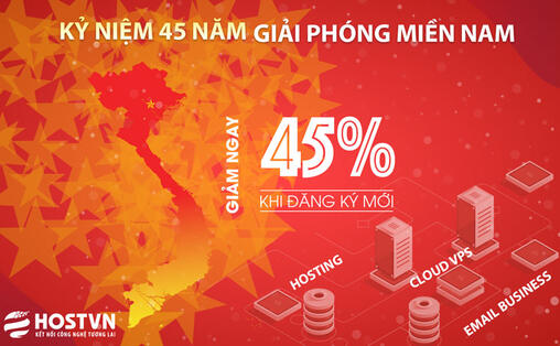 Nhân dịp kỷ niệm 45 năm ngày giải phóng miền Nam thống nhất đất nước HOSTVN khuyến mãi giải phóng miền Nam giảm giá 45% các dịch vụ VPS | HOSTING | EM -