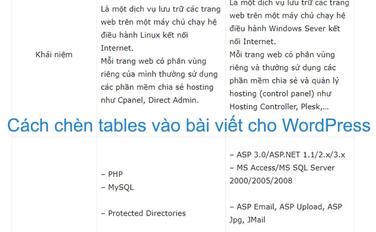 Cách chèn tables vào bài viết cho WordPress